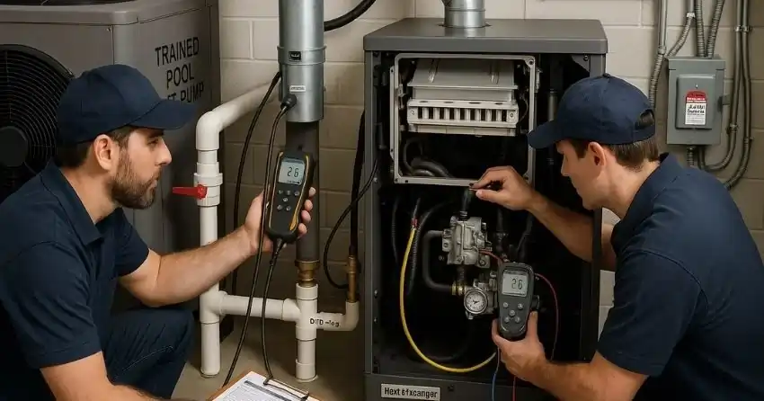 Pool heater repair problems in Oshawa? HVAC Oshawa finds the cause, replaces igniters, sensors, gas valves, control boards, and heat exchangers, clears scale, and confirms operation so the water warms up without unnecessary upsells.